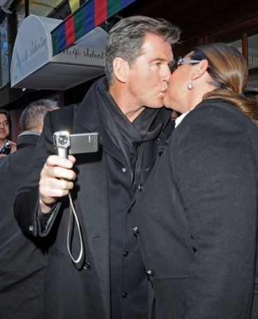 3月1日,007皮尔斯·布鲁斯南(Pierce Brosnan)和肥老婆Keely Shaye Smith、儿子Paris一家三口到位于麦迪逊大道的Nello餐厅吃午饭,庆祝Paris迎来9岁生日。发现有记者,布鲁斯南则一边和妻子热吻秀爱一边以其人之道还治其人之身,举起摄像机和狗仔对拍。(生活新报)