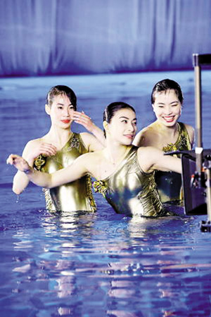 网上同时曝出了一组中国跳水队为某电器品牌拍摄的新广告剧照。在广告中,28岁的郭晶晶和吴敏霞等几位2008北京奥运会冠军穿上性感贴身“黄金圣衣”,以高空跳水的身姿从冰山之巅跃入海洋,并在纯净的海水中畅游。几张剧照中,身着黄金甲的郭晶晶摆出“巩俐式”的性感造型,而其他队员无论表情和动作都比较雷人。在奥运赛场上获得四金的郭晶晶,显然不适合走娱乐路线,她在照片中的一些动作,被网友戏称为“堪比芙蓉姐姐”。
