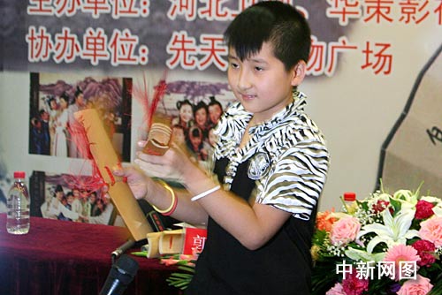 中新网石家庄7月16日电 (李光) 今天下午,千集古装情景喜剧《万卷楼》在石家庄先天下广场召开了媒体发布会和明星观众见面会,该剧主演郭冬临、刘敏、何云伟、路骁天出席活动。