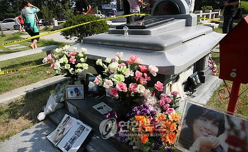 据“韩联社”消息,甲山公园相关人士表示:“当天上午7时50分许,职员在巡查墓园时发现崔真实的墓碑周边的花篮散落在地上,进行整理时发现崔真实的墓碑被打碎,而骨灰盒不见踪影。”