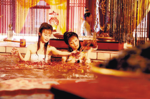 《杨贵妃秘史》正在紧张拍摄,昨日最新曝光的场景篇剧照中,华清池“香艳出镜”,殷桃版杨贵妃与石小群饰演的谢阿蛮在池中沐浴嬉戏,美艳醉人。(晓易)