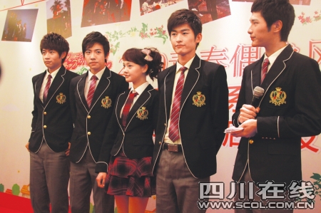 虽然主演们的造型不再雷人,但是两位新增加的“快男”则担负起了雷人的重担。“快男”陆虎顶着一个“蘑菇头”出现时引发一阵笑声,他也自嘲:“可以将这么帅的人打扮得这么不帅,真是难得。”而长相颇似陈冠希的王栎鑫竟然头缠一条宽丝带亮相,被记者们称之为“受伤装”。