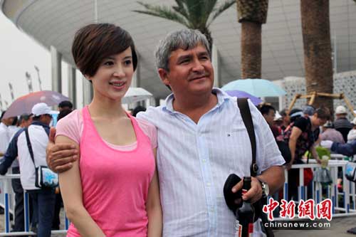 记者采访期间,一名外国影迷请求合影,金巧巧亲切地对他说:“Welcome to ShangHai!”这位朋友趁机一个熊抱金巧巧,还用一口洋味儿的普通话说:“你太漂亮了”。