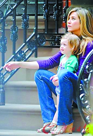 周三,詹妮弗·安妮斯顿和一名小女孩一起在纽约的布鲁克林区拍摄新片《播种爱情》,身穿紫色开衫的詹妮弗·安妮斯顿抱着穿绿色开衫的小女孩坐在楼梯上的画面,很是温馨,虽然安妮斯顿还没做过妈妈,但她的脸上却洋溢着母性的光辉,难怪在前不久的一项有关明星妈妈的民意调查中,安妮斯顿名列前茅。