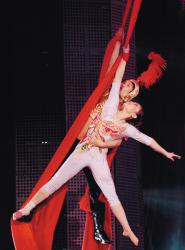 而整个节目的高潮,是在小沈阳换上露脐的盔甲装,演唱电影《神话》主题曲。除了卖力演唱,他还在舞台上玩了次“武侠”,手抓红绸缎,在工体馆上空飞来飞去,引得全场尖叫。