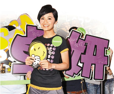中新网6月29日电 蔡卓妍(阿Sa)昨天以服装连锁店“开心大使”身份,到香港铜锣湾试玩全球首部bossini x SmileyWorld开心贩卖机。