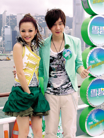 昨日下午,两位“雪碧”代言人张韶涵与林俊杰携手出现在香港丽星邮轮宝瓶号甲板上,他们将于10月17日与周杰伦一起在邮轮上举办演唱会。因心脏病久休后复出的张韶涵一身性感超短裙亮相,她笑称自己身体状况已无问题,将穿比基尼与周杰伦开唱。