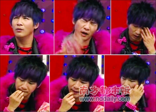 在后面的节目中,对于男女主持的提问,大张伟咬手指、挖眼屎,拿纸巾擦汗,最后索性脱掉了外套喃喃自语,“我今天怎么了!”完全不在状态(见上图)。大鹏终究也被逼“毛”了,突然起身丢下提问稿愤怒离场,直播节目被迫中断。这段视频曝光后,不少网友认为大张伟的状况是犯了毒隐,“这家伙肯定是溜冰(指吸食某种毒品)了”。(记者 黄锐海 实习生 刘文斯)