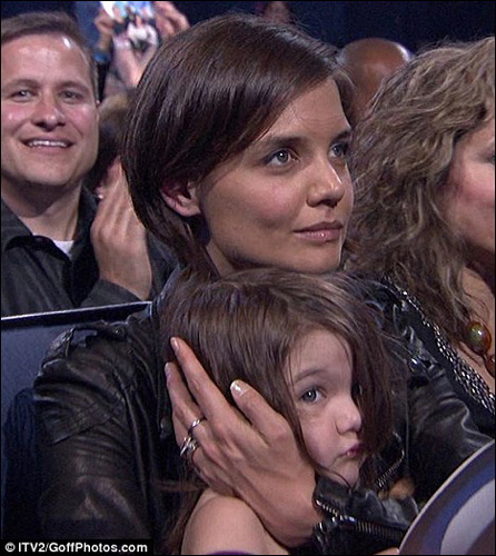 美国大红大紫的选秀节目《美国偶像》不仅仅是吸引到了菲姬,麦莉·赛勒斯这样的超级偶像,连可爱纯真的小苏瑞也去参加了,被记者拍到和妈妈凯蒂·赫尔姆斯一起去观看《美国偶像》,可爱的小苏瑞被妈妈完全护到怀里,不知道看的见台上的表演吗?