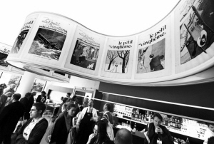 这座外形近似蝴蝶的建筑仿佛被“抬高”到空中,在四周树林的映衬下,显得分外清新。通往博物馆有一条人行桥,大门口的右侧墙体可见“埃尔热”的签名字样,左侧则是以《丁丁历险记》之《金钳螃蟹贩毒集团》为原型的画面。