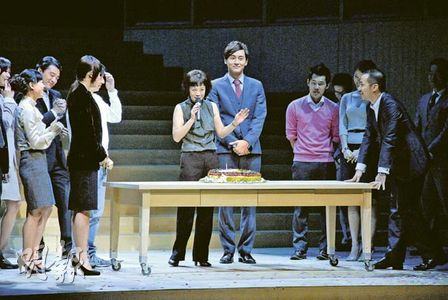 中新网7月21日电 张艾嘉与郑元畅前晚演出舞台剧《华丽上班族之生活与生存》最后一场,结束该剧共53场的亚洲巡回之旅,张艾嘉在谢幕时感触落泪;而剧组也送上惊喜,推出蛋糕为张艾嘉庆祝56岁生日。