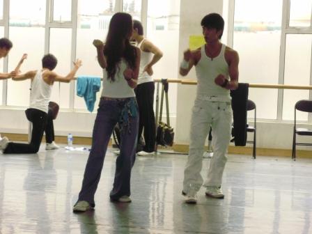 刚刚作为《精舞门》剧组特约出演嘉宾结束在青岛几天拍摄的国内新生代功夫组合“旋武东方”,又应邀来到欢乐谷,作为特聘的武术指导,集中为参加CCTV模特大赛的选手们传授“四十拳种”,近50位优秀选手将面对四天的时尚功夫速成训练营的3关考验,一酷暑下体能的锻炼,二从零起点到接受抽取的拳种的培训,三把时尚功夫编成自己的表演动作,短短四天啊,这对师傅和徒儿们都是难上加难的挑战。