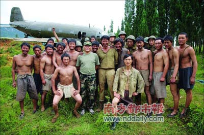 “经过了171天,我宣布《我的团长我的团》(简称:团长)今天关机!”昨天,在昆明滇池附近,《团长》拍完了最后一场戏。在场演员张国强、张译、高峰、罗京民等在那刻高声欢呼,相互拥抱。他们个个像从泥土中爬出来的,破衣烂衫,灰头土脸,却神采飞扬,所有的人最大的愿望便是去洗个热水澡。而在拍摄的最后一天,历经磨难的《团长》也首次向媒体开放现场,记者探班了该剧的最后一场戏:“炮灰团偶遇日本兵”。这场戏虽然是在最后一天才拍,却是发生在前面的一个片断,确切地说,这是第3集第29场戏。这个时候战争刚刚开始,主角们的身体尚未残缺。他们乘飞虎队的C46运输机被日本军队袭击,被迫降在缅甸。此时,炮灰团遇到了日军,第一个日本兵误认为他们是缅甸反英武装,迷糊中被迷龙(张国强饰)干掉。后面日军冲来时,迷龙带头逃跑,枪弹炸药声四起。这场戏中,日军拿着10来条真枪,背景是被炸毁巨大C46运输机。