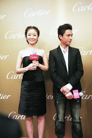 曾在都市爱情剧《非你不可》中饰演一对情侣的林心如、陈坤,25日晚携手来到长沙友谊商店,为卡地亚珠宝走秀。