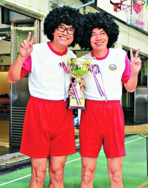 51岁的苗侨伟和41岁的谢天华前日在一间小学续拍无线新剧《老公万岁》,二人为了搞笑戏分,不惜自毁形象,穿着运动校服配爆炸头出镜,谢天华更提议与苗侨伟将裤头拉高束腰,“越薯(粤语指傻里傻气)越好”。两人在《学警狙击》中的“Laughing哥”和“孝哥”角色都以型男著称,这次自拆招牌,两人不但不担心形象受损,谢天华还搞笑地表示,“我还担心粉丝更多了呢!”苗侨伟透露戏中尚有多个搞笑造型,比这个爆炸头更出彩,希望能带给观众惊喜。