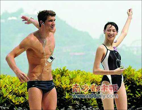 菲尔普斯曾与梁洛施"亲密接触" 泳装合照曝光(图)