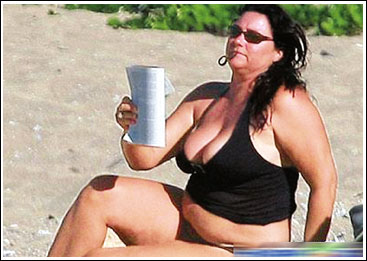 布鲁斯南版的“詹姆斯·邦德”向来身边靓女如云,但现实生活中,这位英国绅士只爱妻子——130公斤的肥婆姬丽·史密斯。54岁的布鲁斯南于2001年迎娶了比他小10岁的第二任太太姬丽,但在为丈夫先后生下两个儿子后,专心相夫教子的她身材走样儿,到了海滨度假总被媒体惊呼“鲸鱼搁浅”,但这全然不会动摇她在布鲁斯南心里的地位。上周在hawaii海滩,除了和老婆横抱在一起旁若无人的热吻以外,骑在一棵倒下的树桩上看剧本的布鲁斯南,还不时对着妻子做鬼脸只为博芳颜一笑。