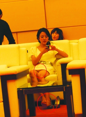 颜丹晨全无淑女形象 蹭脚丫晒大腿露底裤(图)