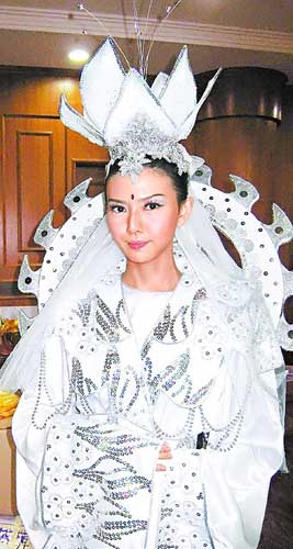 孙燕姿今年初在新加坡演出电影《12莲花》,片中扮观世音的造型。