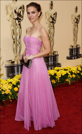 娜塔莉·波特曼粉红晚装甜美中带着性感,十分漂亮 。