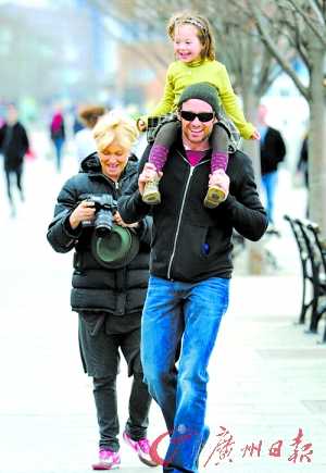 《X战警》男星休·杰克曼(见上图)举家出动到公园游玩,妻子黛博拉·李·弗妮斯、岳母、一双儿女Oscar 和Ava,外加一名男性亲戚,一行人浩浩荡荡其乐融融。