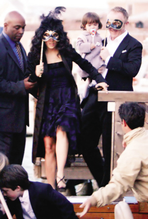 长达两天的婚礼处处经过精心布置。上周五,主人家按照传统,在威尼斯古迹海关大楼举行了一场晚宴彩排以及假面舞会。海耶克、皮诺特带着他们19个月大的女儿瓦伦蒂娜以及皮诺特与前妻的儿子,乘坐“水上巴士”抵达会场。无论是婚礼主角海耶克和皮诺特,还是塞隆等来宾均手持面具遮脸。