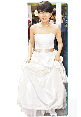 中新网3月20日电 Ella昨穿婚纱为师兄动力火车新歌《爱到疯癫》拍MV,27岁的她毫不客气紧贴尤秋兴,称被他的“电眼”电晕,还相约若她37岁没嫁出去,他就娶她,最后他更一把将她抱起,已婚的颜志琳完全被晾在一旁。