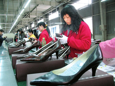 昨天下午,记者来到位于武侯区簇桥簇马工业园成都依百兰鞋业。工厂内四条生产线正加足马力生产Bandolino的订单,其中一条流水线上生产的,正是奥巴马夫人穿的那款鞋。