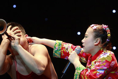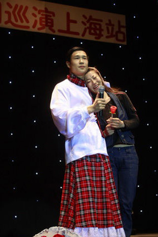 中新网4月27日电 《刘老根大舞台》小沈阳笑转2009,全国巡演上海站昨晚(26日)在上海大舞台(上海体育馆)拉开序幕,王金龙和毛毛(丫蛋)夫妇同台献艺,毛毛上演了野蛮老婆的戏码。丫蛋以野蛮的招数著称,这次刚刚新婚不久的夫妻二人,给上海的观众朋友们来了个以外惊喜。观众的欢呼声让整个体育馆达到了高潮。