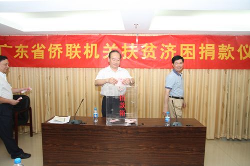7日1日上午,省侨联组织机关全体人员举行“广东扶贫济困日”活动捐款仪式。在省侨联副主席林圣德、区德强等会领导的带动下,机关全体干部职工踊跃捐款,共筹得善款1.1万元。正在北京学习的中国侨联副主席、广东省侨联主席王荣宝也专程打来电话委托捐款。