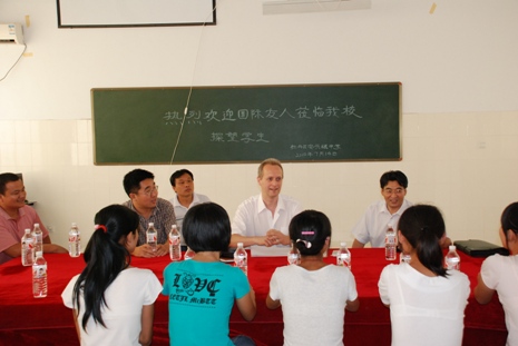 中新网7月15日电 据菏泽市侨联消息,7月14日,德国中国教育资助工程协会主席托马斯·费尔和中国驻法兰克福总领馆前领事谭华训一行,在菏泽市侨联副主席卢文朋、张忠的陪同下,到牡丹区安兴镇中学和鄄城县彭楼镇两所中学进行助学考察。