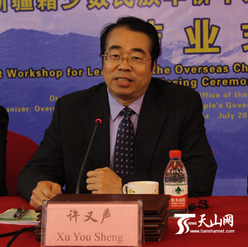 7月24日上午,首期新疆籍少数民族华侨华人社团负责人研习班结业式在乌鲁木齐举行。国侨办副主任许又声出席结业式并讲话。自治区副主席胡伟出席结业式并致辞。