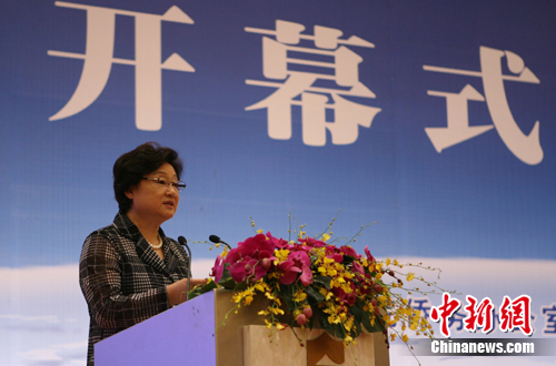 第六届世界华人论坛于7月26日至27日在广州举行,出席本届论坛的海内外代表350多人,其中海外代表190人,来自美国、加拿大、英国、德国等25个国家和地区,大多数为新能源、生物医药、金融、食品工程、信息通讯等领域的学术权威出席本届论坛。图为国务院侨务办公室主任李海峰在开幕式上致辞。 中新社发 苏丹 摄