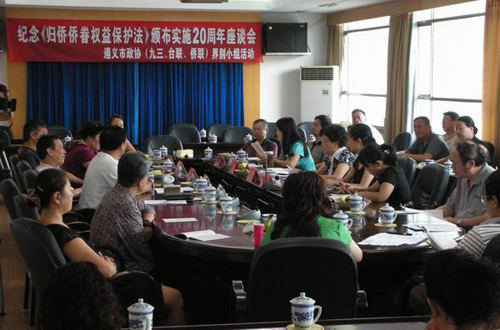 会上,遵义市侨联主席刘素珍首先发言,向界别小组汇报了全市贯彻实施《保护法》的情况。然后由红花岗区侨联主席龙沙向界别小组委员汇报了红花岗区侨联历年来贯彻落实《保护法》的工作成效,得到了小组领导的肯定。汇川区侨联主席肖直霖也作了汇报。各区归侨侨眷代表也分别作了发言,畅谈《保护法》颁布实施以来遵义市侨务工作出现的新局面。