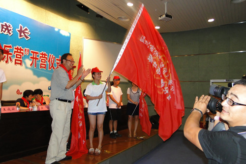 在开营仪式上,温州大学党委副书记林娟娟、温州市委常委、省侨联副主席、市侨联主席余梅生,省侨联主席吴晶分别在开营仪式上致辞。侨界留守儿童快乐营的志愿者代表和侨界留守儿童代表分别在仪式上作了表态性发言。最后,中国侨联副主席、浙江省人大民侨委副主任王成云为承办“留守儿童快乐营”活动的分营进行了授旗。