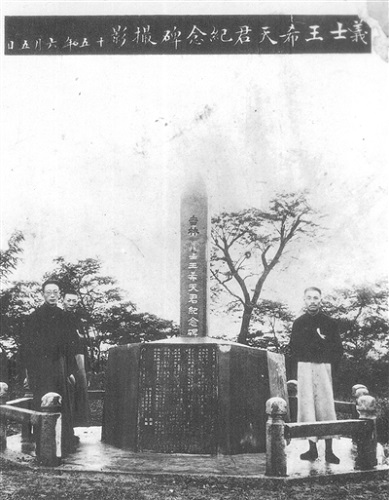 王希天被杀害后,1924年,其好友孙宗尧在吉林创办“希天医院”作为纪念,同年9月,在他牺牲一周年时,其好友谢介眉编撰了《王希天君小史》一书,介绍王希天生平与业绩。1926年1月,温州工学界人士在市区华盖山大观亭侧募建了“吉林义士王希天君纪念碑”,1944年日军侵占温州时将它捣毁,后于1993年重建。
