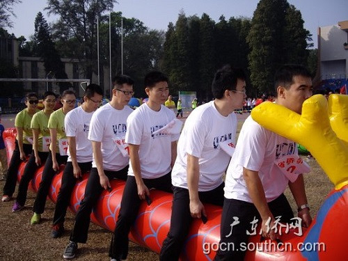 中新网11月5日电 据广东侨网消息,11月3日,广东省侨办机关工会组织20名机关干部职工参加了省直机关首届趣味运动会。本次运动会是省直工委为实施枢纽型组织创建行动,打造群团组织工作品牌,以“健康快乐、团结协作”为主题,加强省直机关的横向交流,增强党群组织的创造活力而举办的,是集中展示省直机关干部职工的精神风貌,积极凝聚正能量的举措。