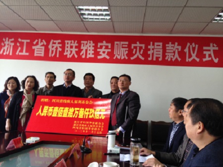 浙江侨联雅安芦山赈灾捐款仪式在四川芦山举行