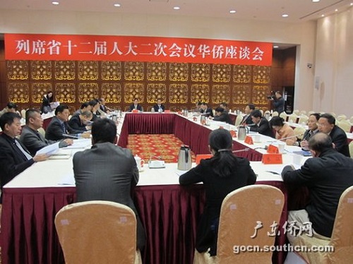 中新网1月21日电 据广东省侨办网站消息,1月19日,广东省人大召开列席省十二届人大二次会议华侨座谈会,听取列席省人代会议的华侨对侨务工作及广东保护华侨权益立法工作的意见和建议。省人大常委会委员、侨民宗委主任委员戎铁文主持座谈会,广东省侨办副主任林琳、省侨联副主席华清文以及首次列席省人代会议的10名华侨代表参加了座谈会。