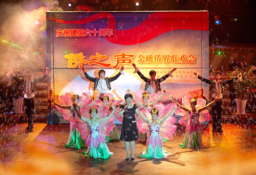 在浓厚的爱国激情中,在座的全场观众、演职人员参与了北川中学援建捐赠活动,共收到爱心款48000余元。这是余姚市侨界为新中国60华诞献上的最美的礼物。(余姚市侨联 徐玉青)