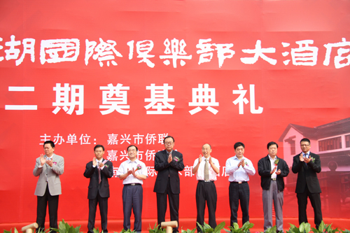 中国侨联副主席、浙江省侨联主席王成云、嘉兴市委常委、市纪委书记冯志礼等领导以及市级有关部门、南湖区委、区政府、南湖国际俱乐部二期项目投资方、建设单位、市多家媒体等近100人出席了奠基仪式。