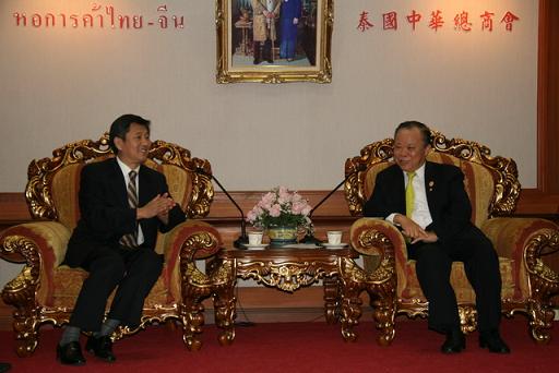 中新网11月27日电 据山东省侨办消息,11月25日,山东省侨务访问团赴泰国中华总商会拜访。总商会副主席陈振志、刘暹有以及常务会董、会董、总干事等与访问团见面。座谈会后,双方互赠纪念品,中国驻泰王国大使馆侨务参赞左志强陪同拜访。