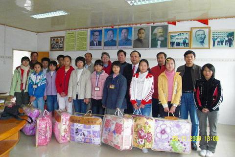 玉林市侨联还向这10名学生分别赠送了棉被。