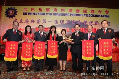中新网11月27日电 据广东侨网消息,11月26日晚,马来西亚沙巴州广东同乡会馆联合会成立庆典暨第一届理事会宣誓就职晚宴在沙巴亚庇丝绸港湾麦哲伦大酒店隆重举行,来自中国、新加坡、汶莱、西马、沙捞越等地的嘉宾共700多人出席了庆典仪式。广东省侨办副主任黎静、深圳市侨办主任钟荫腾等广东省市侨务部门领导出席了庆典仪式。马来西亚联邦首相署副部长YB拿督刘伟强局绅担任庆典仪式主礼嘉宾。