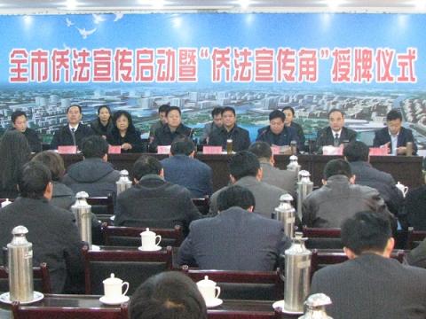 会议对全市侨法宣传工作进行了部署,并向市中区荣华里社区和光明园社区进行了“全国侨务系统五五普法侨法宣传角”授牌。
