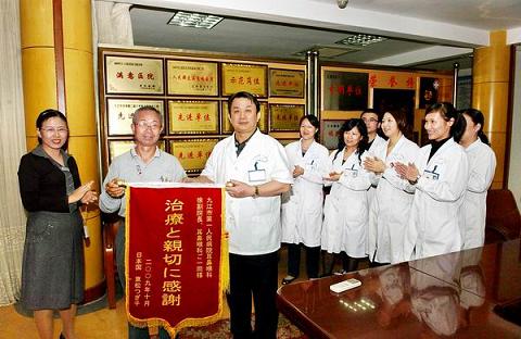 原来,上月的一天,随团访问九江的东松老太太,在晚宴上不慎让一根鱼刺卡住了喉咙,九江市外事侨务办公室翻译于红立即将老人送往市第一人民医院。该院医生连夜为老人施医术,解急难。经过努力,东松老太太化险为夷,安全、按时返回日本,对九江大加赞赏,用中国方式以锦旗相赠为谢。