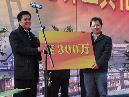 中新网12月31日电 据青田县发展和改革局消息,12月28日,浙江省青田县高市旅游接待中心举行开工典礼。中国侨联副主席、宁夏回族自治区侨联主席、浙江省侨联青年总会荣誉会长朱奕龙为开工典礼剪彩,并为高市村新农村建设个人捐赠300万元,青田县领导王通林、杨雷、叶选君、陈海民、吕大德、舒志勇及县相关职能部门代表参加了仪式。