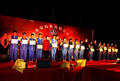 中新网1月4日电 据开平市外事侨务局、侨联会消息,12月30日,广东开平市吴汉良理工学校举行庆祝2010年元旦暨吴汉良先生、吴如兼女士奖教奖学金颁奖晚会。开平市旅港乡亲江门市荣誉市民、开平市荣誉市民吴如兼女士专程回乡,向吴汉良理工学校颁发奖教奖学金。开平市人大副主任黄旭征,教育局、外侨局、总工会等部门领导、嘉宾以及该校全体师生出席颁奖晚会。