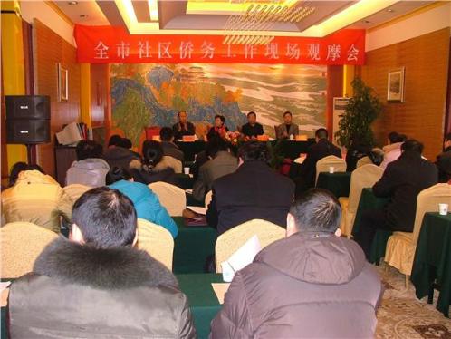 会议上,连云港市侨办主任刘娟简要通报了2009年以来全市社区侨务工作,并表示,召开全市社区侨务工作现场观摩会,目的是深入贯彻落实科学发展观和《省民政厅、省侨办<关于进一步加强全省社区侨务工作的意见>》会议精神,结合该市融入江苏沿海开发的战略部署,坚持全面推进社区侨务工作建设,积极营造争先创优的浓厚氛围,提高为侨服务、为大局服务的能力和水平,促进社区全面建设和协调发展,为和谐社会建设添砖加瓦。
