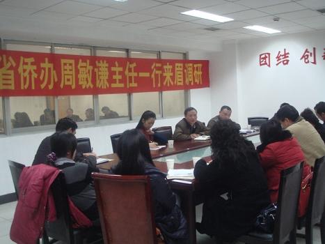 中新网1月7日电 据四川侨网消息,1月6日,四川省侨办主任周敏谦率秘书处、经科处负责人赴眉山市调研,并慰问部分归侨侨眷,考察侨资企业。眉山市委副书记、市长李静会见了周敏谦一行,眉山市委常委、副市长付康,副市长冉涛分别陪同调研、慰问。